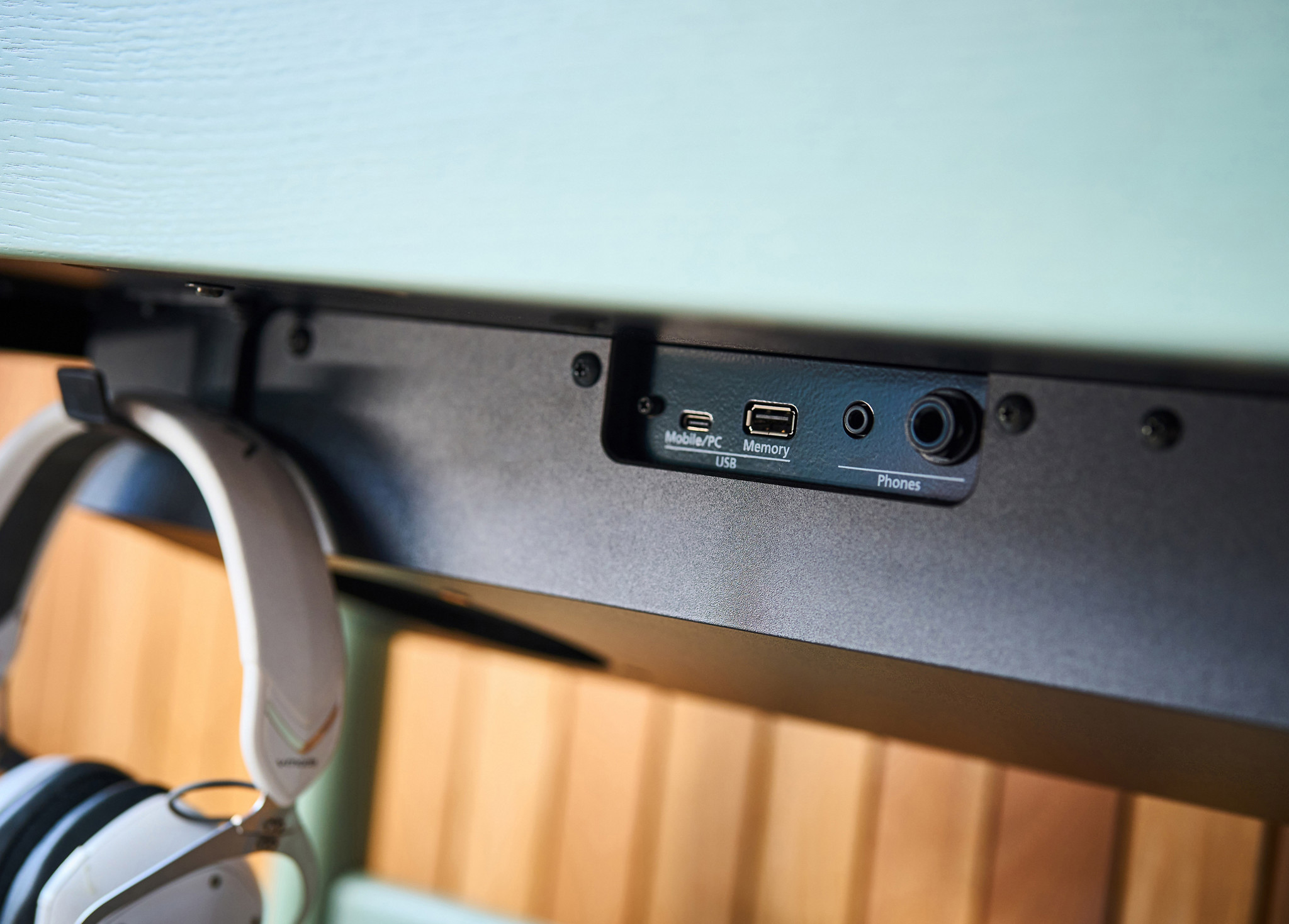 Zwei Kopfhöreranschlüsse (6,3 mm Klinke & 3,5 mm Miniklinke) für leises Üben zu jeder Tageszeit